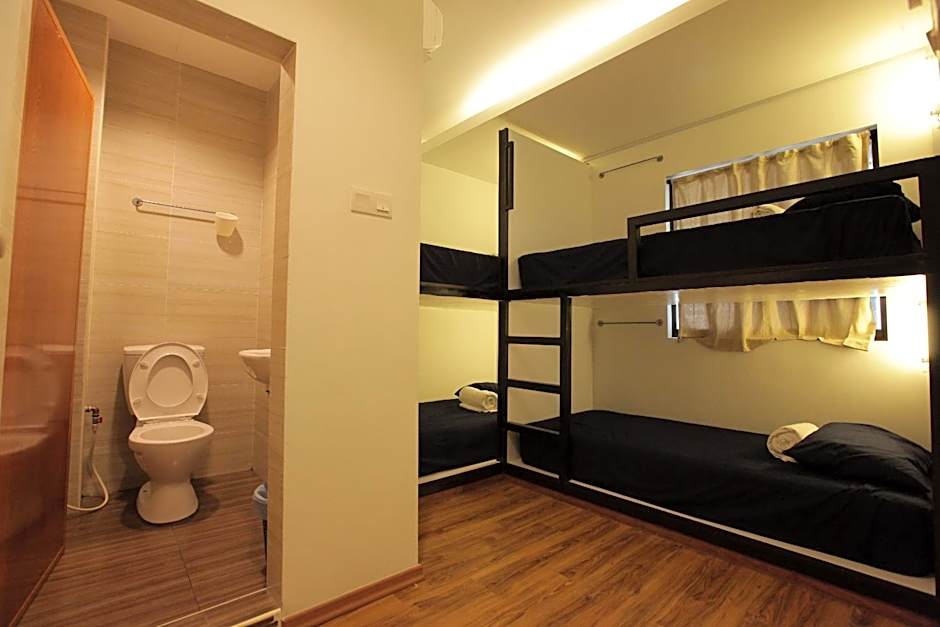 This 6-bed dormitory come air-conditioned. Each bed in this room comes with its own designated locker. Private bathroom is fitted with standing shower. Rate is for one guest only.